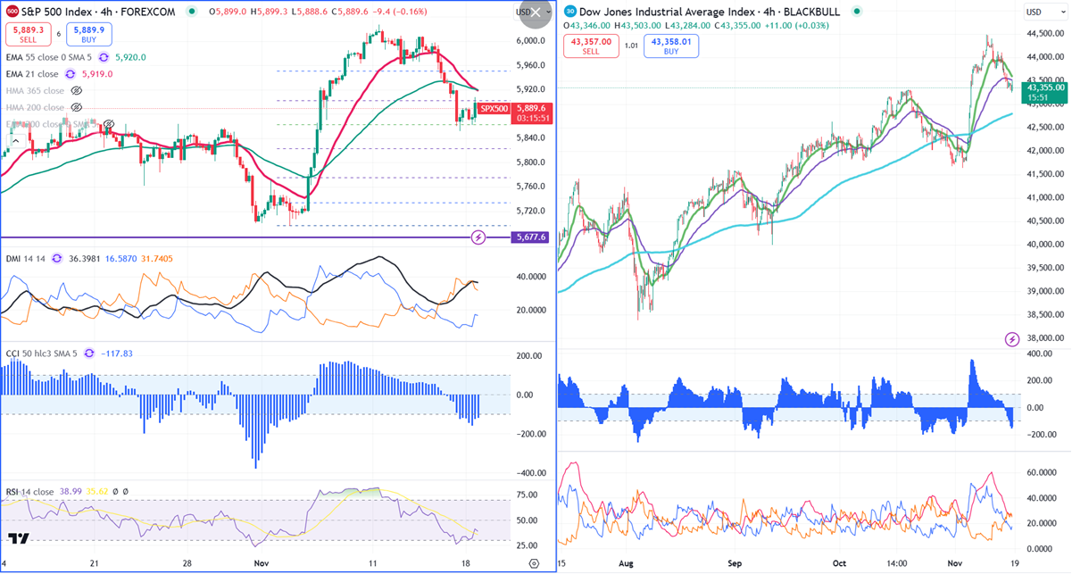 In the 4-hour chart, the pair holds below the short-term (34, 55 EMA) and long-term (200 EMA) EMAs.