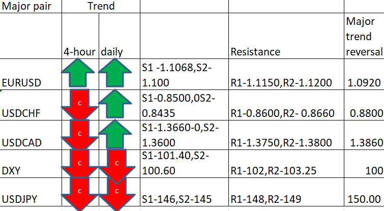 Major pair levels and bias summary