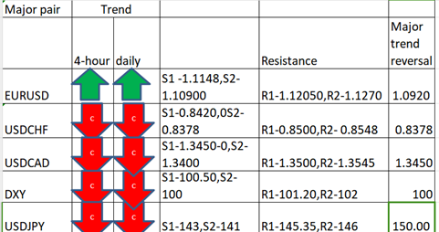 FxWirePro- Major Pair levels and bias summary
