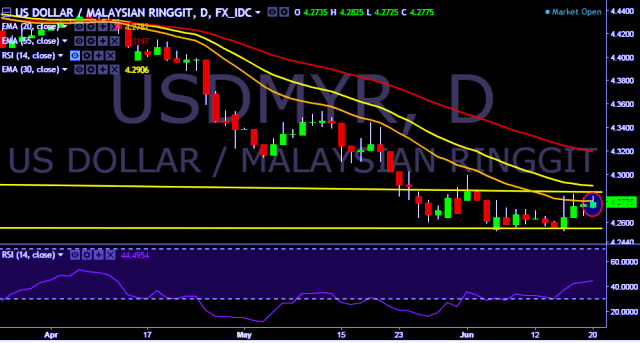 We prefer to take long position in USD/MYR around 4.2770, stop loss 4.2640 and target 4.3030 levels.