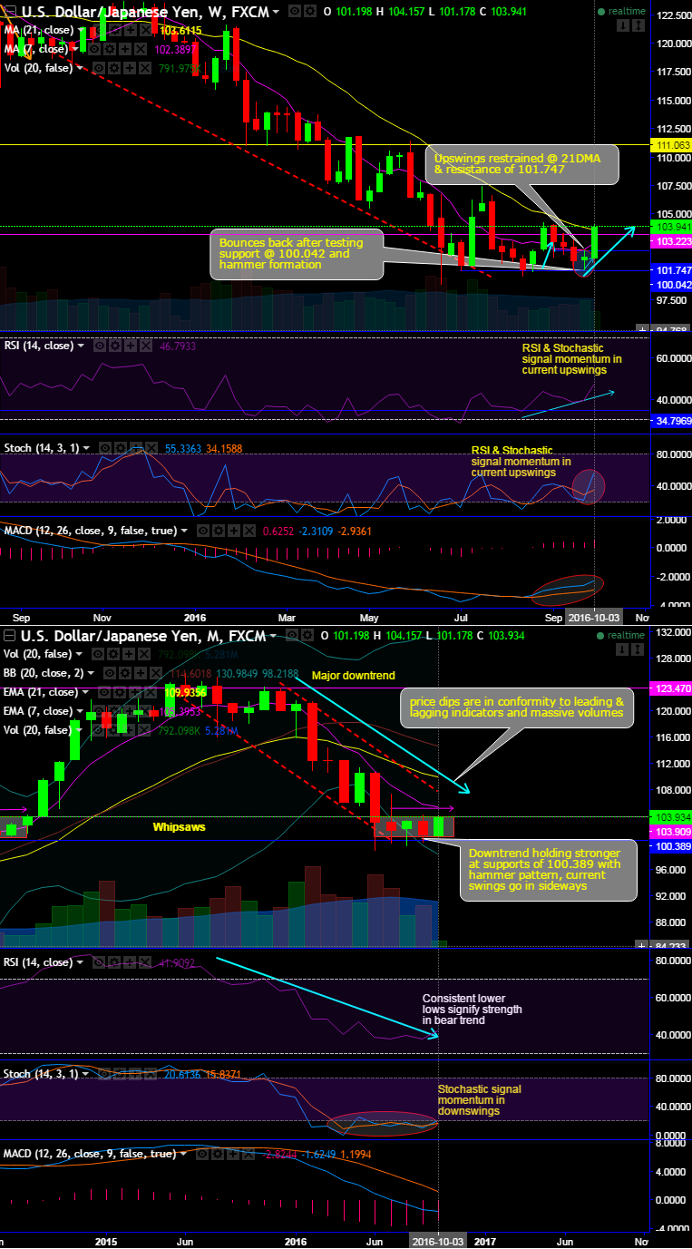 On a broader perspective, the trend has still been moving in sideways after bearish rout for almost 1 year or so, the prices are holding stronger at 100.389 levels.