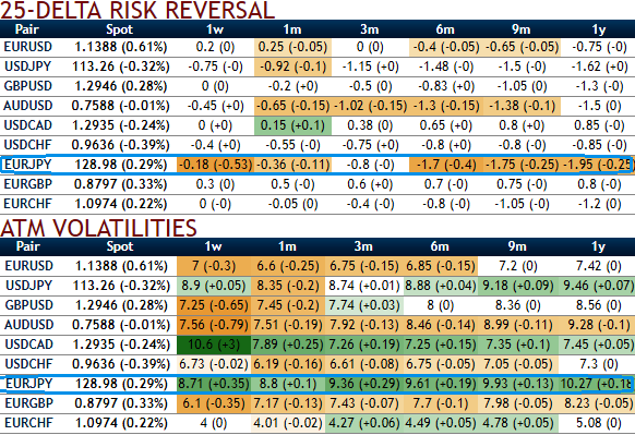 Please be noted that the IVs of EURJPY is spiking highest among G10 FX space and risk reversals have been indicating bearish risks in short run and has been neutral in the long run. A Risk Reversal is an individually tailored hedging solution, structured to meet your needs.
