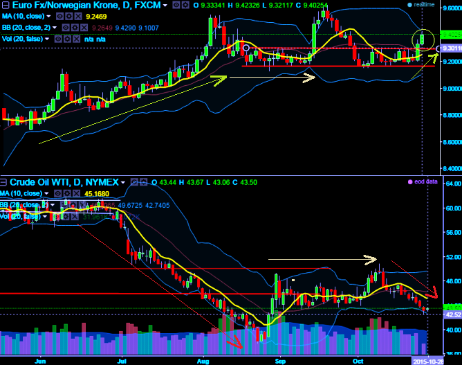 We can observe from the diagram how this currency cross is directly proportional to the oil prices.