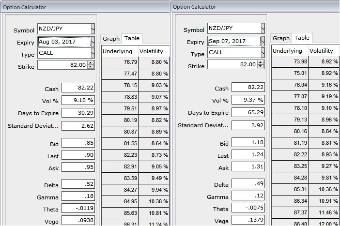 NZDJPY option straps strategy should take care of both upswings and downswings simultaneously, and on speculative grounds, the strategy is likely to derive handsome returns on the upside and certain yields regardless of swings on either side but with more potential on the upside.