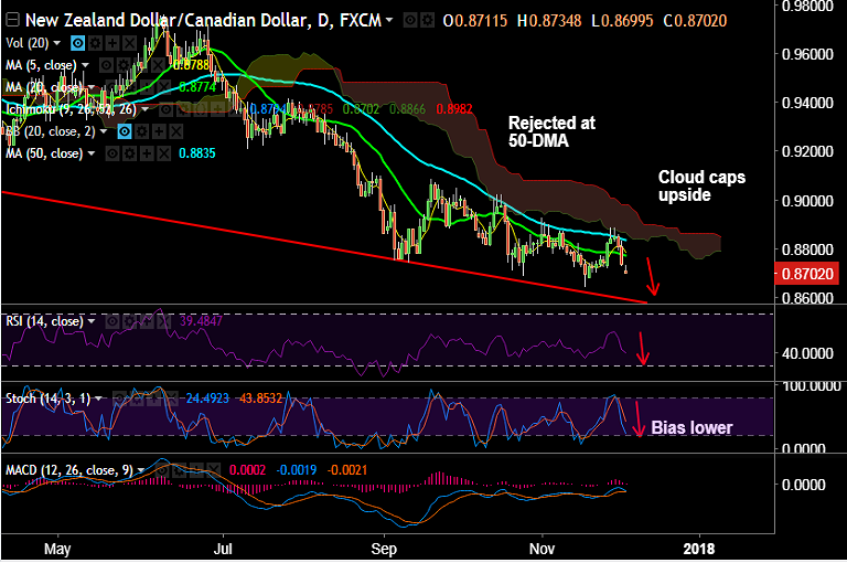 Resistance levels - 0.8774 (20-DMA), 0.8788 (5-DMA), 0.88, 0.8835 (50-DMA)