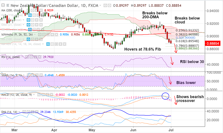 - NZD/CAD is extending previous week's massive slump where the pair fell over 3.25%.