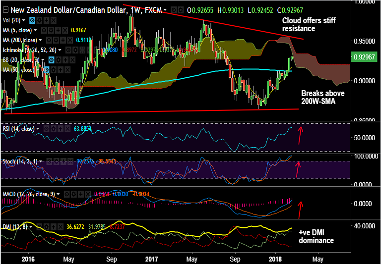 - NZD/CAD extends upside for 4th successive week, trades 0.11% higher on the day.