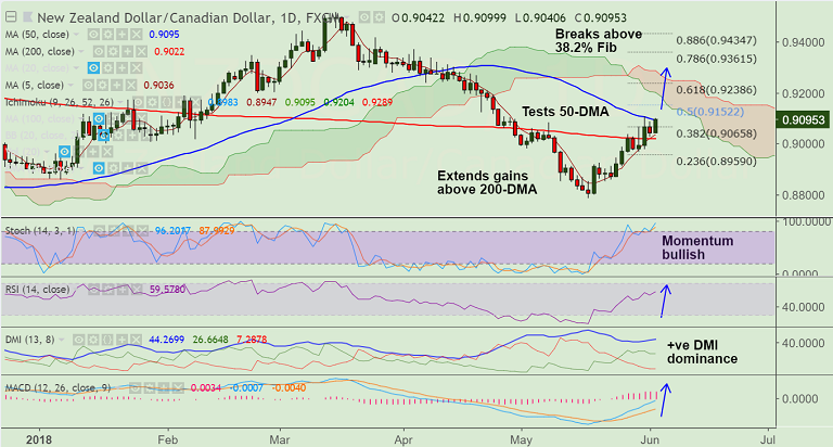 - On the flipside, the pair is holding above 5-DMA which is immediate support at 0.9037. We see major weakness only on break below 200-DMA.