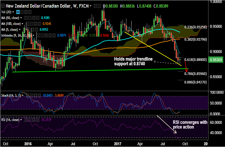 - NZD/CAD holds major trendline support at 0.8740, weakness only on break below.