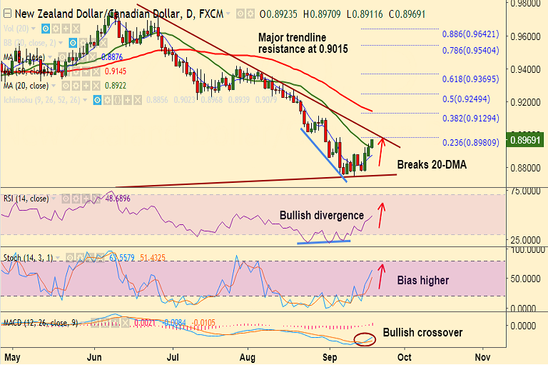 - Close above 20-DMA raises scope for upside, next major resistance seen at 0.9010.