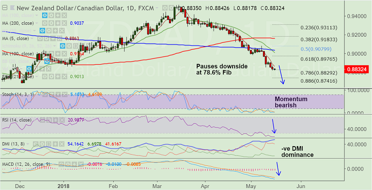 Resistance levels - 0.8864 (5-DMA), 0.89, 0.8976 (61.8% Fib)