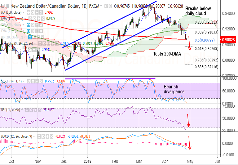 - The pair has broken below daily cloud and 100-DMA, and break below 200-DMA will accentuate weakness.