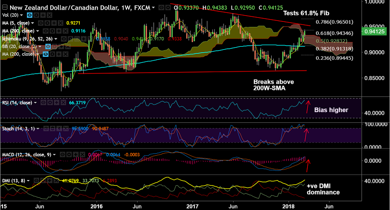 - Decisive break above weekly cloud at 0.9338 and 200W SMA has raised scope for further gains.