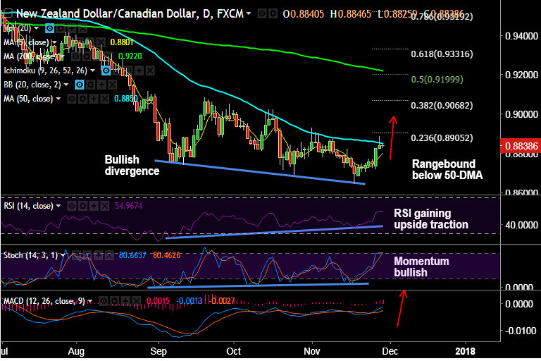 - NZD/CAD has retraced break above 50-DMA on Tuesday's trade and close below 50-DMA.