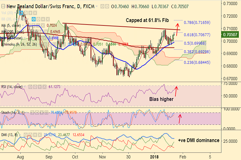 - NZD/CHF spikes past 5-DMA to hit fresh highs for the week at 0.7066.