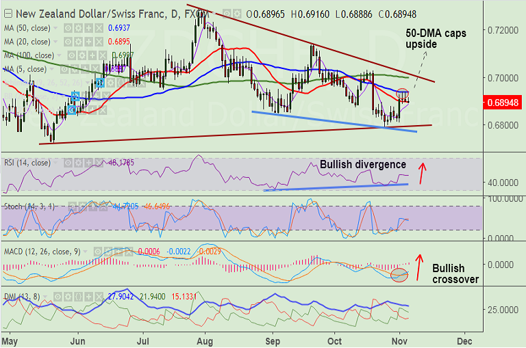 - The pair remains capped below 50-DMA at 0.6937, break above could see further upside.