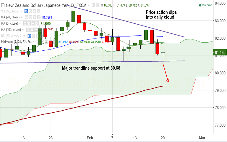 Support levels - 80.68 (Trendline), 80, 79.66 (Weekly 20-SMA), 79.24 (100-DMA), 78.71 (cloud base)