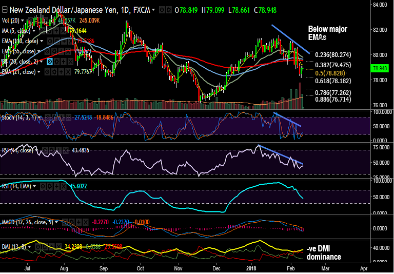 - Upside seems to be capped at 5-DMA and breakout could only see minor upside till 200-DMA at 79.77.