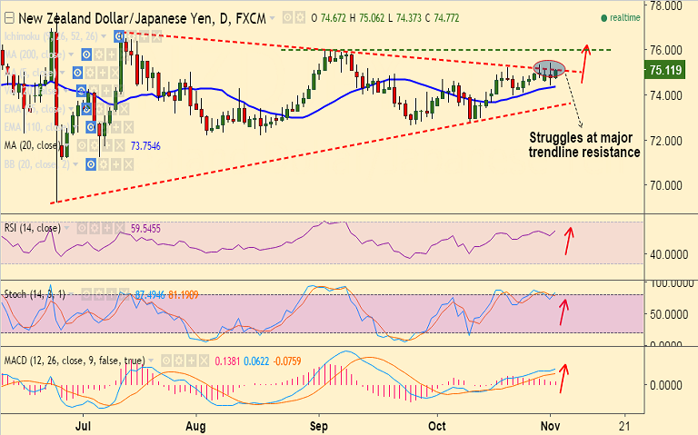 - Major resistance levels - 75.20 (trendline), 75.44 (Nov 1 high), 76 (trendline)