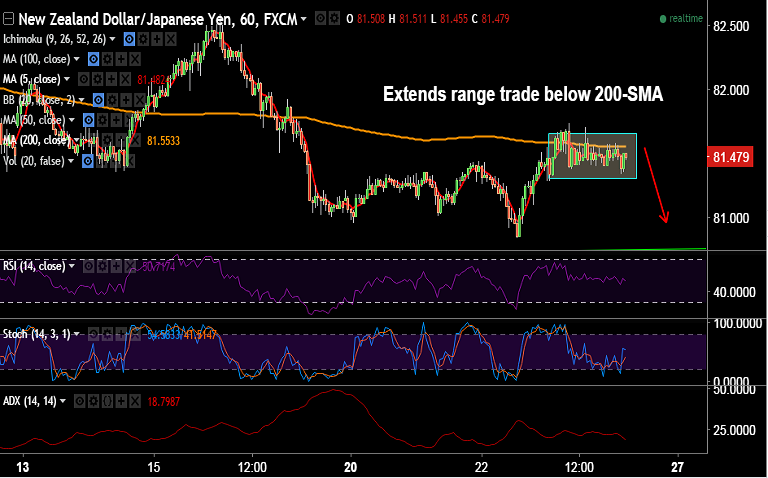- NZD/JPY fails at 1H 200-SMA at 81.55, trades a narrow range in the Asian session.