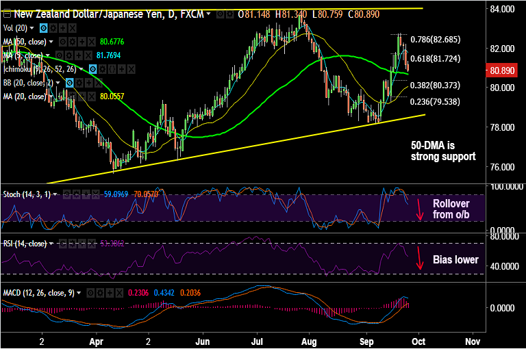 Support levels - 80.67 (50-DMA), 80.37 (38.2% Fib retrace of 83.91 to 78.18 fall), 80.05 (20-DMA), 79.23 (Sept 15 low)