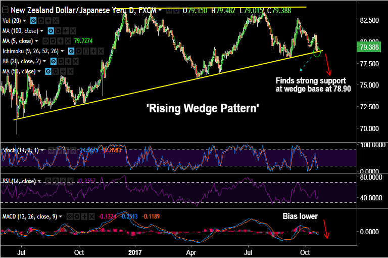 - The major is trading in a rising Wedge pattern, and finds strong support at Wedge base at 78.90.