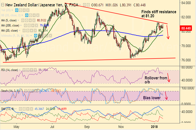 Resistance levels - 80.50 (5-DMA), 81.20 (trendline), 81.31 (Jan 9 high)
