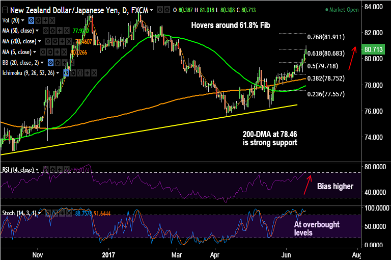 - The pair is hovering around 61.8% Fib of 83.80 to 75.62 fall at 80.68.