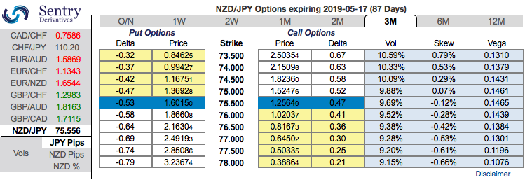 NZDJPY could nudge a bit higher this week if global risk sentiment remains upbeat. There’s a decent batch of data from Japan with Jan trade data Wednesday, the flash PMI Thursday and national CPI Friday.