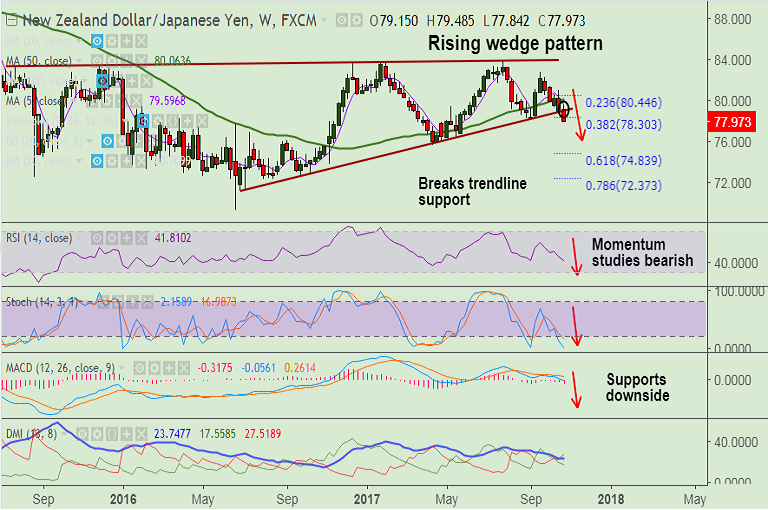 - Technical studies are bearish, pair has slipped below 38.2% Fib at 78.30.