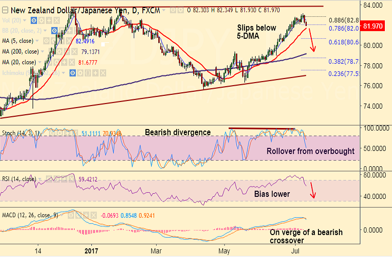 Resistance levels - 82.49 (5-DMA), 82.87 (88.6% Fib), 83, 83.15 (July 10 high)