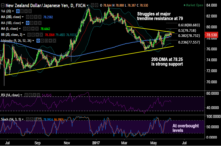 - The pair finds stiff resistance on the upside and is currently struggling to extend gains above 79 handle.