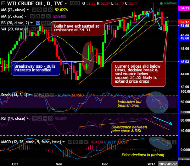 Price swings stuck in range, any attempts of upswings restrained below 21DMA, break below support of 80.650 likely to drag more declines, else bulls may resume.