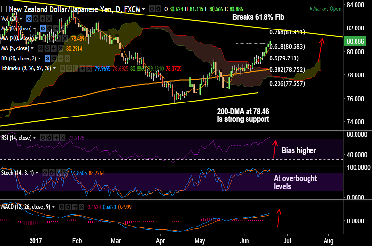 - The pair made fresh 4-month high of 81.11 before paring some gains, bias higher.