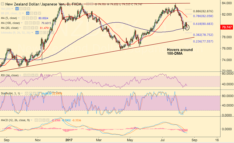 Support levels - 79.69 (100-DMA), 79.67 (weekly 20-SMA), 78.52 (38.2% Fib retrace of 83.809 to 75.626 fall)