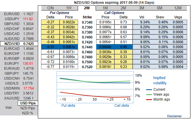 The NZD volatility market normalized sharply (you could observe that in NZDUSD IV skews across all tenors) and IV skewness is quite favorable for OTM put option holders amid ongoing bullish swings, hence, we eye on writing overpriced in the money put options that are likely to reduce hedging costs of long legs.
