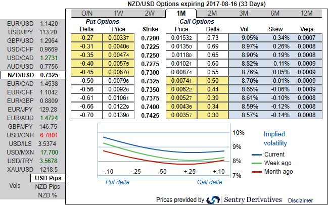NZDUSD has been holding up well, against expectations, a 0.7200-0.7345 range likely during the day ahead.