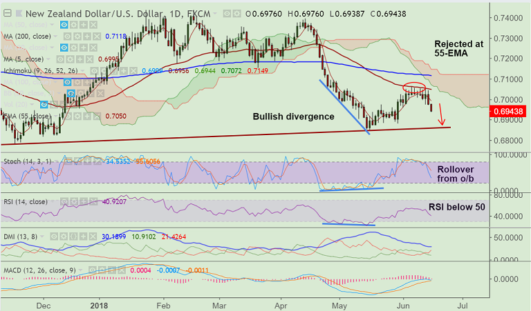 Resistance levels - 0.6995 (5-DMA), 0.7050 (55-EMA), 0.71
