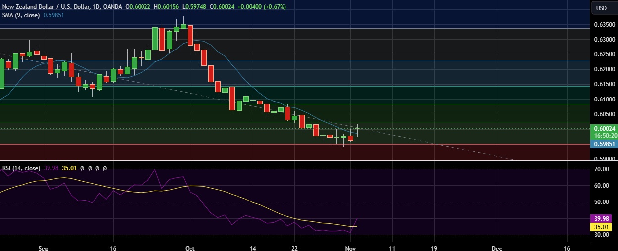 • NZD/USD bounded on Monday as US dollar dipped asmarket braced for outcome for the U.S. presidential election.