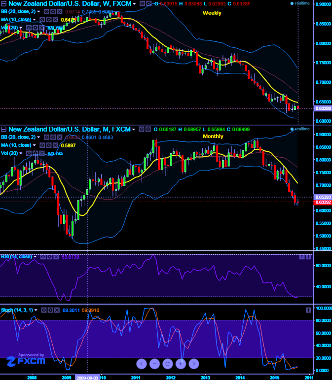 Technical Roundup: We already stated in our previous posts, on weekly charts, the pair has been tumbling non-stop from the peaks at 0.7736 levels from last April to evidence the huge loses. The pair currently held strong supports at 0.6200 levels from one and half months. You can observe on the monthly charts for the historical evidence as to how the pair has behaved whenever RSI and stochastic curves have simultaneously reached oversold zone. Kiwi dollar after continues losing streak that has begun from mid April, it is now making an attempt of recovery a bit as both RSI and stochastic oscillators signaling buying sentiments in oversold zone.