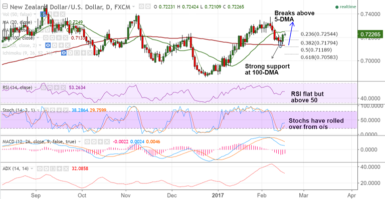 Support levels - 0.7199 (5-DMA), 0.7179 (38.2% Fib retrace of 0.6862 to 0.7375 rise), 0.7133 (100-DMA)