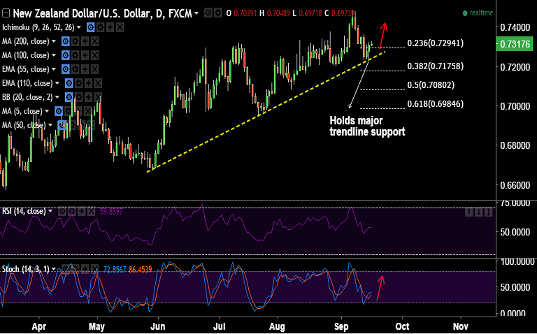 Recommendation: Good to go long on dips around 0.73 levels, SL: 0.7250, TP: 0.7360/ 0.7380/ 0.74