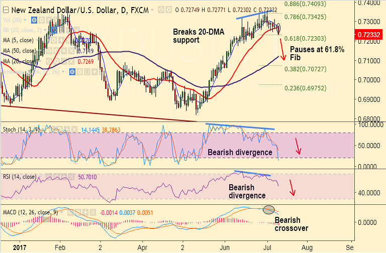 Support levels - 0.7272 (20-DMA), 0.7268 (5-DMA), 0.72, 0.7170 (June 12 lows)