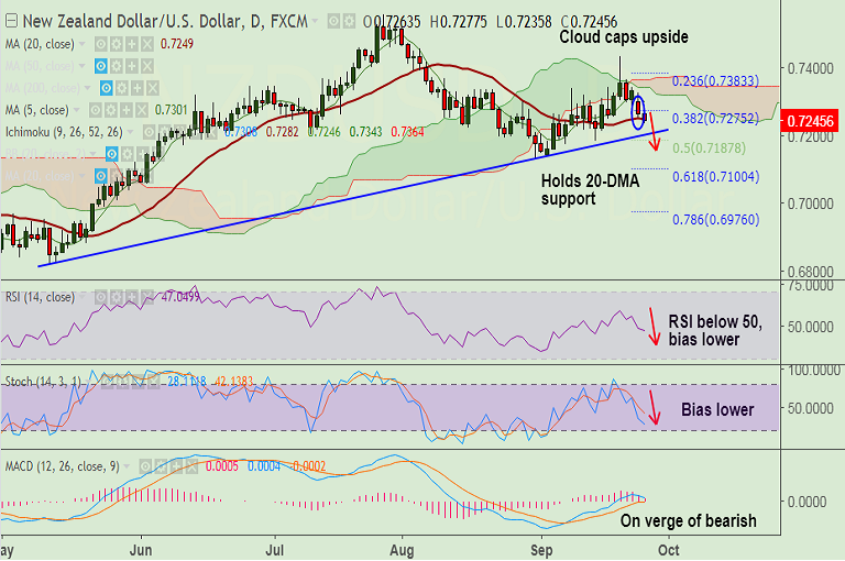 - NZD/USD extends downside for 2nd consecutive session, breaks 20-DMA support at 0.7249.