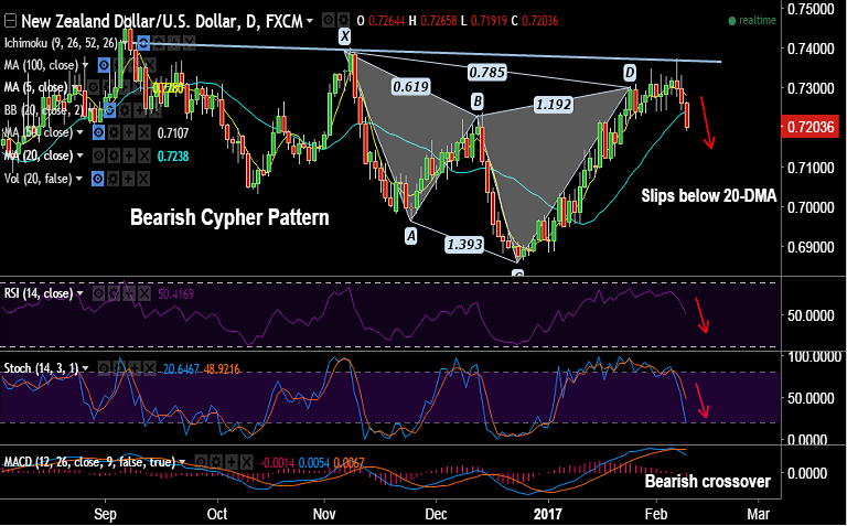 - Next major support seen by 100-DMA at 0.7137, while immediate resistance is seen at 0.7238 (20-DMA).