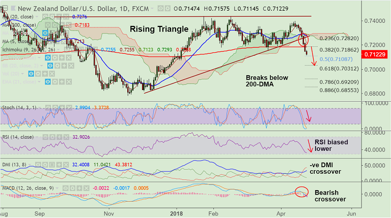 Resistance levels - 0.7183 (200-DMA), 0.72, 0.7212 (5-DMA)