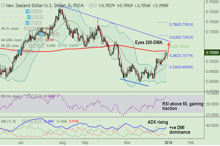 - The pair has hit fresh 2-month highs at 0.7094, breach at 200-DMA targets 0.72 levels.