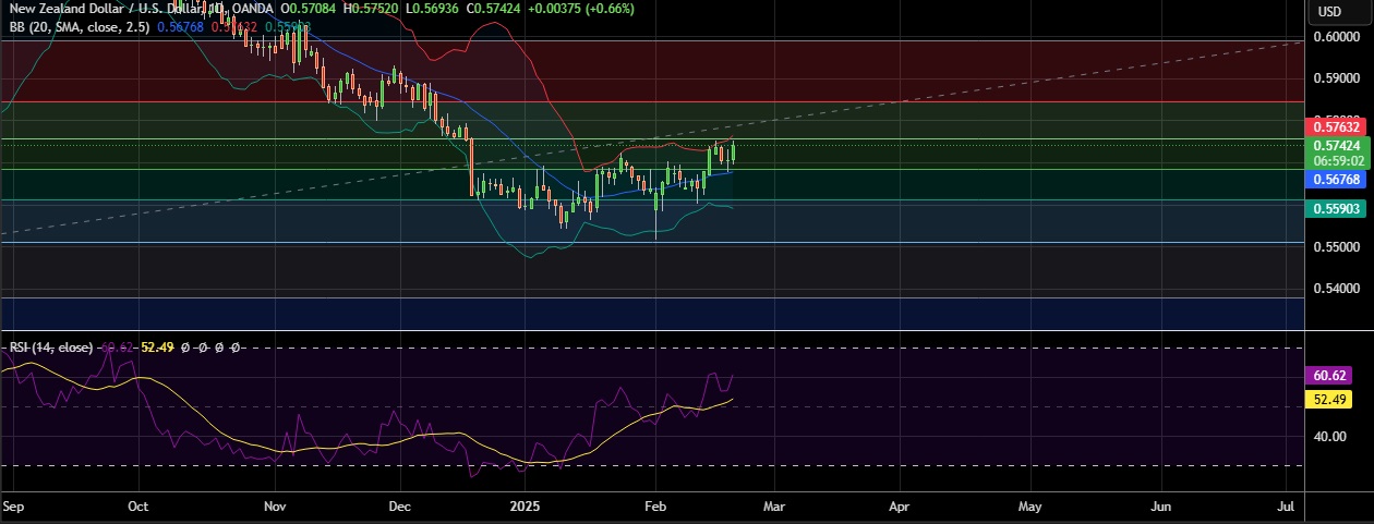 • At GMT 14:59, The kiwi dollar was last trading up 0.68% to $0.5743. .