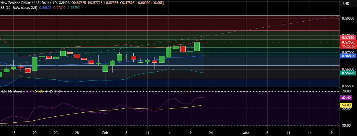 • Support is seen at 0.5686(50%fib) and break below could take the pair towards 0.5647 (Jan 23rd low).