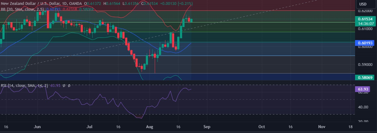 • At (GMT 06:21) kiwi dollar was trading at $0.6153 against the U.S. dollar, having risen 1.5% for the week to reach a high of $0.6178.
